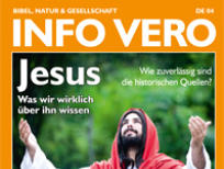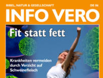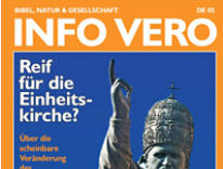 Zeitgemässe Aufmachung & aktuelle ThemenINFO VERO ist eine neue und einzigartige (undatierte) evangelistische Zeitschrift zum Weitergeben an Freunde. Der Untertitel lautet „Bibel, Natur & Gesellschaft“. Das Heft verbindet die Attraktivität eines reich illustrierten, modernen Hochglanzmagazins mit der Klarheit und Wahrheit der biblischen Endzeitbotschaft, die von den drei Engeln in Offenbarung 14 verkündigt wird. Die Redaktion besteht aus Walter Veith, Gabriele Pietruska und Sigrun Schumacher. Zu den freien Fotografen gehören Henry Stober und Alden Ho.